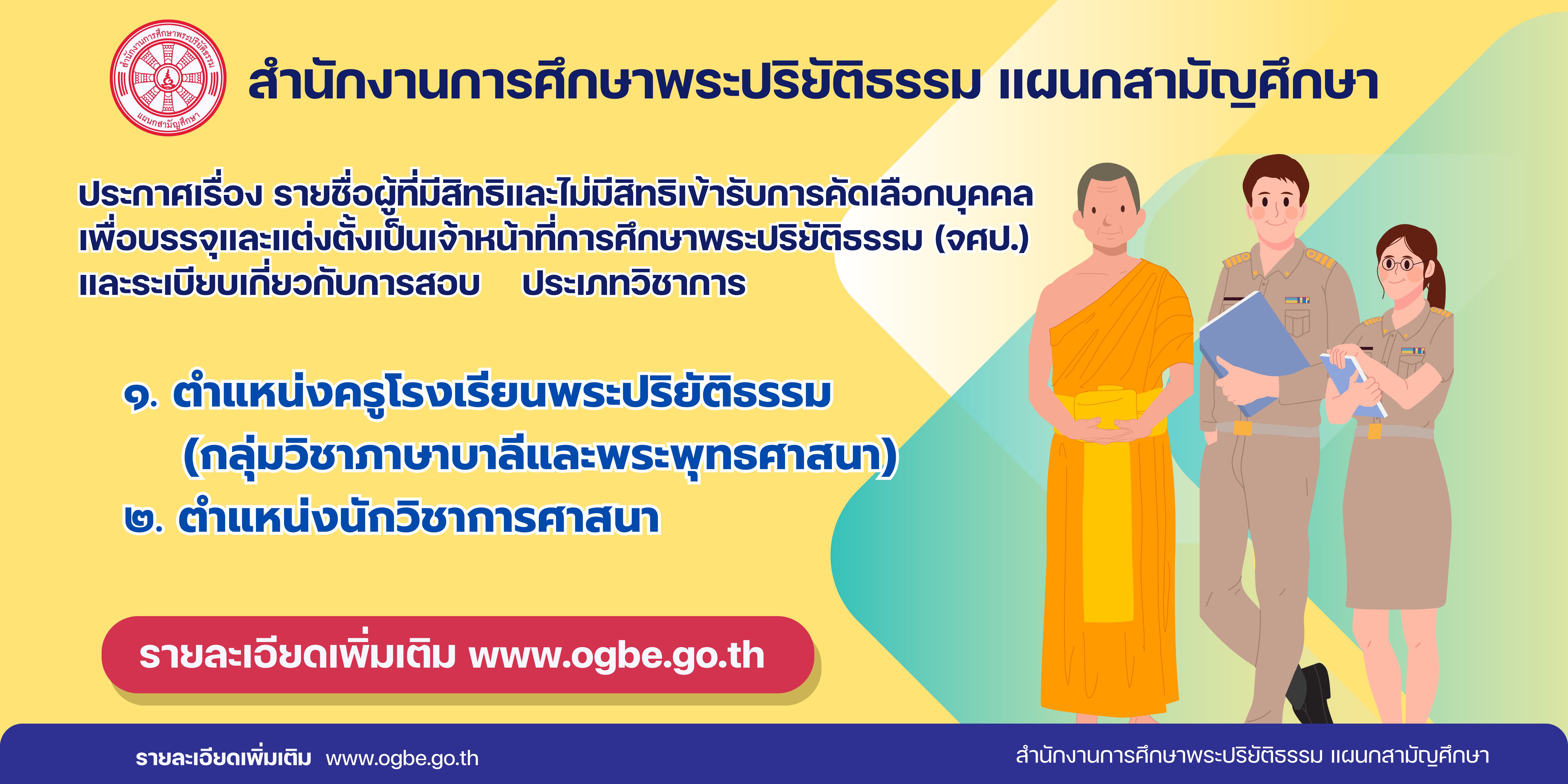รายชื่อผู้มีสิทธิและไม่มีสิทธิเข้ารับการคัดเลือก ในการคัดเลือกบุคคลเพื่อบรรจุและแต่งตั้งเป็นเจ้าหน้าที่การศึกษาพระปริยัติธรรม (จศป.)